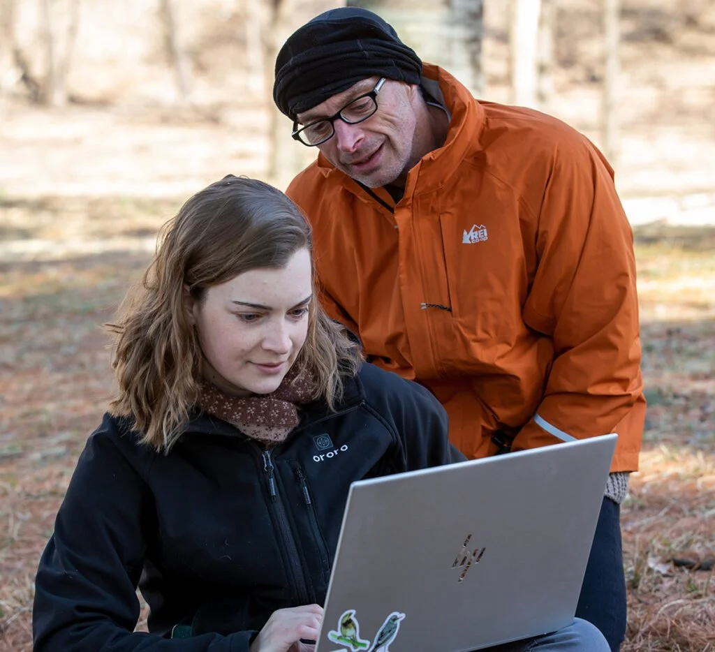 Stella Uiterwaal and Steve Blake recording bird diversity data in Forest Park. Photo: Joe Angeles